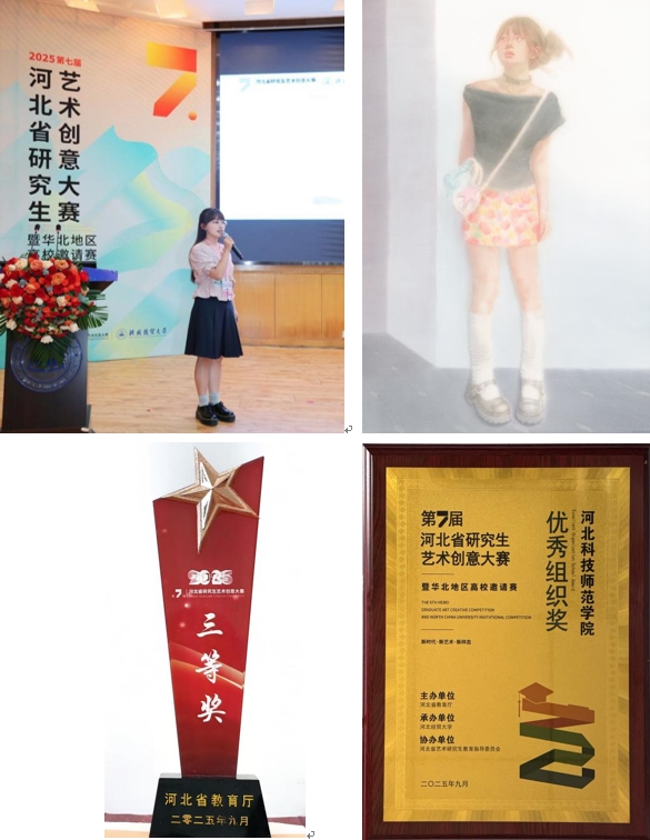 2025年9月19日,由河北省教育厅主办的第七届河北省研究生艺术创意大赛在河北经贸大学圆满落幕。Beat365研究生夏慧的作品《视线之外》喜获三等奖,Beat365获得优秀组织奖。