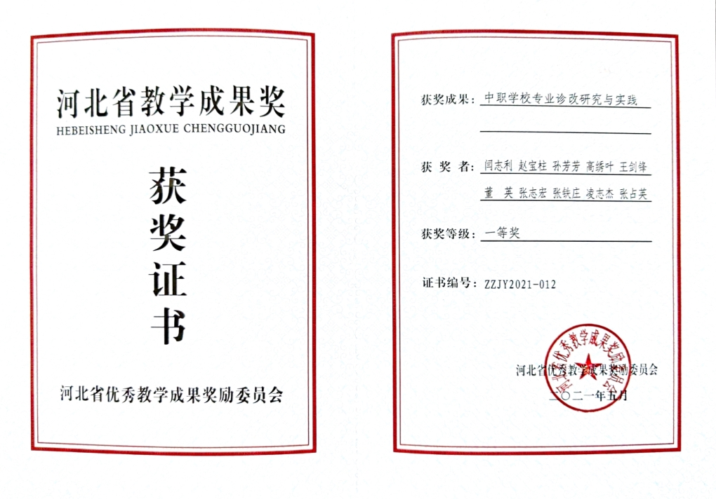 中职学校专业诊改研究与实践--河北省教学成果奖一等奖