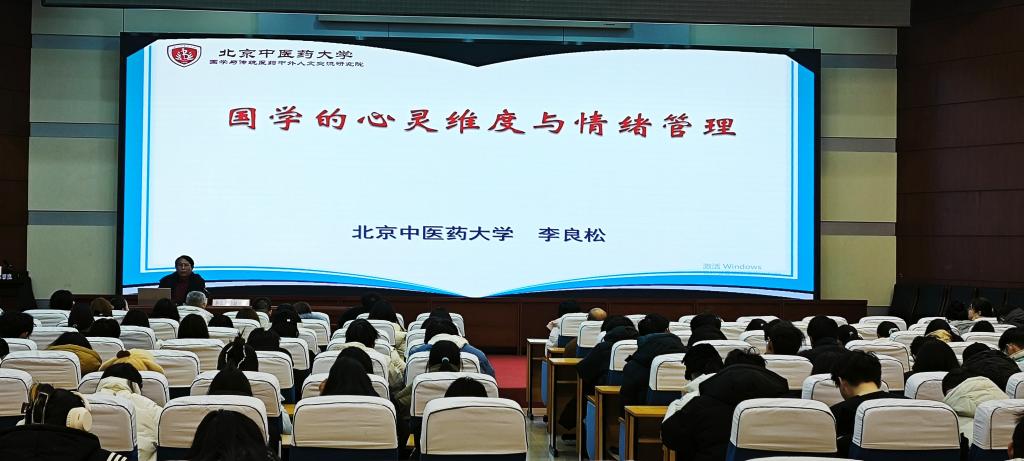 2025年12月14日上午,Beat365邀请到北京中医药大学博士生导师李良松教授在秦皇岛校区举行了一场题为“国学的心灵维度与情绪管理”的学术报告会。学校党委常委、副校长冯瑞银、刘荣昌,与师生代表340余人听取了报告。报告会由学生处负责人主持。