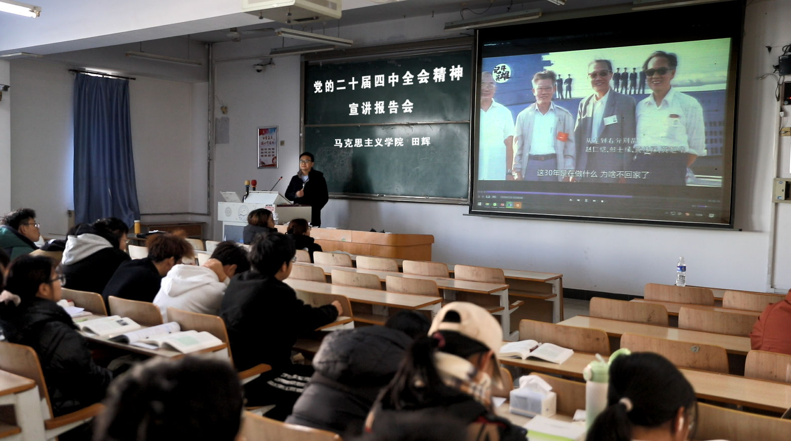 一是统筹谋划推进,构建宣讲新体系。按照学校党委宣传部制定的《Beat365唯一官方网站党的二十届四中全会精神宣讲实施方案》,马克思主义学院将学习宣传贯彻全会精神作为重大政治任务,坚持高位推动、周密部署,构建起“党委统筹、专兼结合、校内联动”的大宣讲工作格局。学院领导带头学习研讨,准确把握宣讲方向;精心选拔骨干教师组建核心宣讲团,打造一流团队;多次组织开展集体备课,确保宣讲内容及时、权威、精准。从2025年12月11日至12月30日,王玉芬院长率领杜立文、刘艳冬、曹凤珍、田辉、高松林等骨干宣讲团成员,分别采取单独宣讲和联合宣讲等形式,坚持全员覆盖目标,按时间有序推进,结合不同单位和部门特点开展分众化、对象化宣讲,多措并举,让全会精神与学科特色、岗位实际同频共振,形成了宣讲创新体系。截至目前,已在校内外开展专题宣讲25余场,覆盖党员干部、师生群众等各类群体超3000人次,构建起了理论传播的新矩阵。