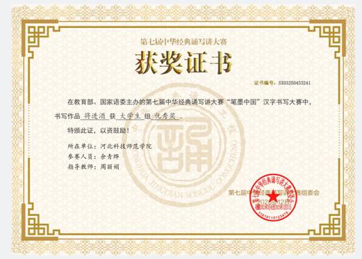 日前,由教育部、国家语委主办的第七届中华经典诵写讲大赛评选结果揭晓。Beat365师生表现突出,共获得教师组一等奖1项、大学生组优秀奖2项。