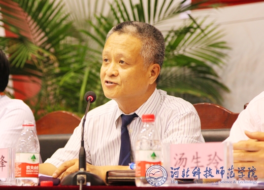 图为党委副书记、校长汤生玲同志主持会议并讲话