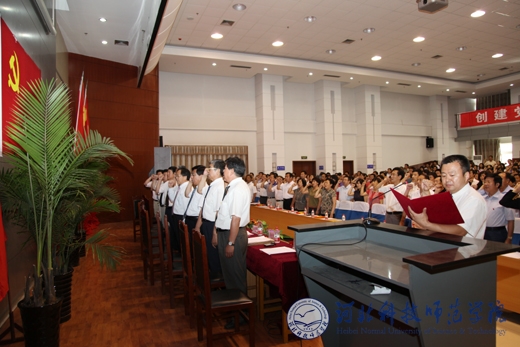 石千峰书记在讲话中对当前在全校基层党组织和全体党员中开展创先争优活动提出了明确要求,同时作了重要部署。他对“我为党旗添光彩”行动作了积极动员,并提出了殷切希望。