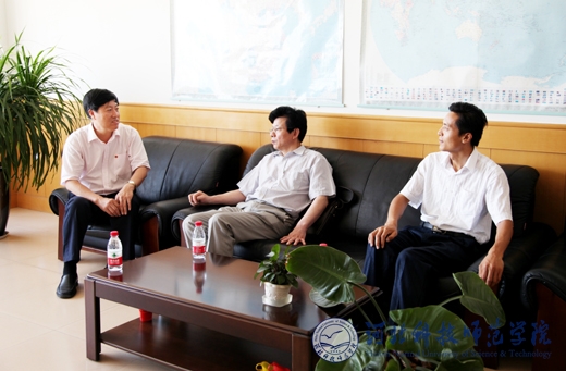 图为党委书记石千峰会见潘光记者和姜明文编辑