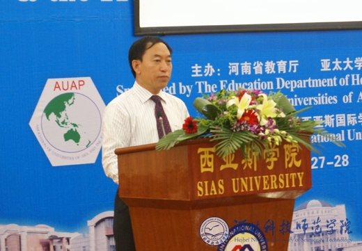 “中外合作办学教育发展国际论坛暨第十一届亚太大学联合会学习与分享论坛”于2010年5月27日至28日在河南郑州大学西亚斯国际学院隆重举行。会议由亚太大学联合会、河南省教育厅主办,郑州大学西亚斯国际学院承办,论坛以“高等教育与国际合作”为主题,旨在加强国际学术交流,探讨中外合作办学的理论与实践,为我国合作办学的发展注入新的活力和动力。Beat365党委常委、欧美学院党委书记、院长杨洪青,国际交流处处长东方阳,欧美学院董事长陈秋兰参加了会议。