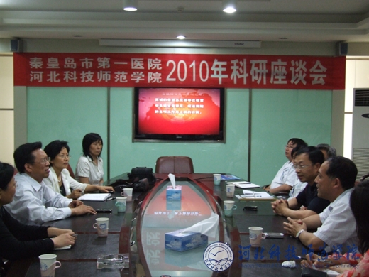 2010年6月7日,王同坤副校长带领科研处、动物科技学院、理化学院的有关负责人及专家一行10人,应邀到秦皇岛市人民医院就双方开展合作事宜进行座谈。市人民医院党委书记尹福在、副院长刘兰祥及专家15人出席了座谈会。