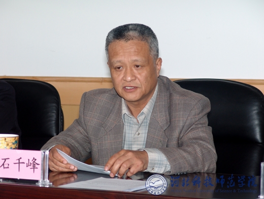 图为党委书记石千峰同志在会上讲话