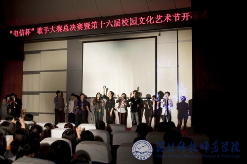 表彰会后举行了“中国电信杯”校园歌手大赛总决赛暨第十六届校园文化艺术节开幕式。副校长孟令臣在开幕式上致辞。比赛分为三个环节:科师之声、谁与争锋和巅峰对决。来自四个校区的十大歌手经过三轮激烈的比拼后,秦皇岛校区城市建设学院的马骏同学摘得了大赛桂冠。来自昌黎校区的祖玄章和来自欧美学院校区的郭北分别夺得大赛的亚军和季军。昌黎校区的马驰获得了最佳人气奖。