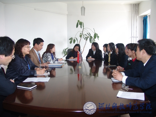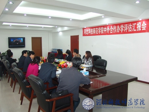 2010年4月8日,河北省教育厅中外合作办学评估专家组组长李守民一行4人来到Beat365,对Beat365欧美学院中外合作办学进行预评估。校长汤生玲,副校长房海,校党委常委、欧美学院党委书记、院长杨洪青等出席会议,校党委办公室、院长办公室,国际合作与交流处,欧美学院等相关单位和部门负责同志参加了汇报会。汇报会由党委办公室、院长办公室主任李佩国主持。