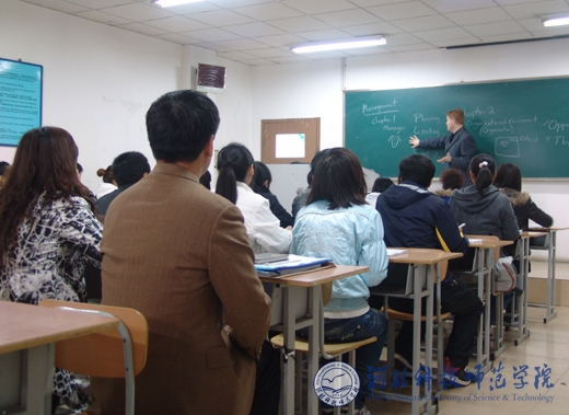 图为专家组在听外籍教师授课