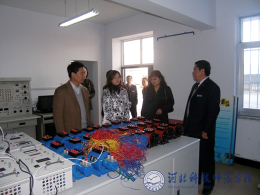 图为专家组在欧美学院工科实训基地考察