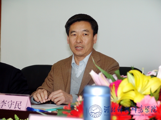图为省教育厅评估专家组组长李守民在会上讲话