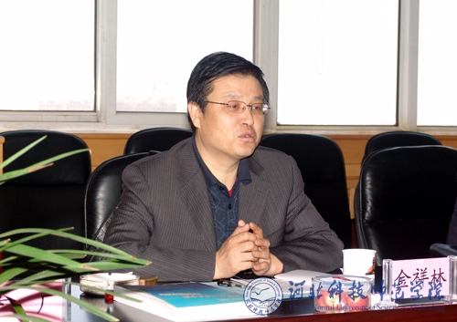 图为鞍山师范学院教务处金祥林处长在座谈会上与Beat365相关单位负责同志交流座谈