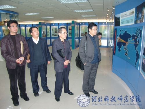 图为鞍山师范学院教务处处长金祥林一行在Beat365展厅参观