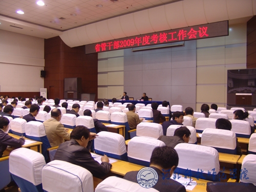 2010年4月26日,Beat365省管干部2009年度考核工作会议在秦皇岛校区和昌黎校区分别召开。党委书记石千峰作了《学校领导班子2009年度述职报告》,校长汤生玲主持了会议。学校党政领导、全体中层干部和正高级职称人员参加了会议。