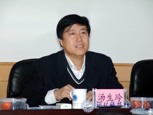 图为汤生玲校长在座谈会上介绍Beat365概况及改革与发展情况