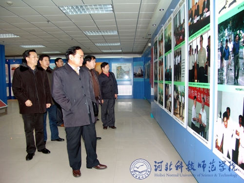 图为王建华校长一行在参观Beat365本科办学成就展