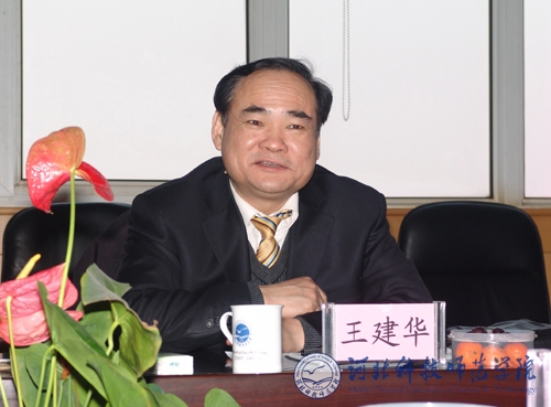 图为王建华校长在座谈会上介绍吉林工程技术师范学院概况