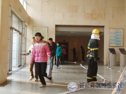 综合演练分为自救和专业救援两个环节。200余名在图书馆查阅资料的师生听到模拟火警警报后,迅速在最短时间找到安全出口,在现场教师的组织下紧张有序地撤离模拟事故现场。与此同时,公安消防官兵驾驶2辆消防车快速赶到现场铺设管路,架设水枪,实施救援。演练达到了预期效果。