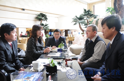 图为汤生玲校长与美国特洛伊大学副校长英格拉姆进行洽谈