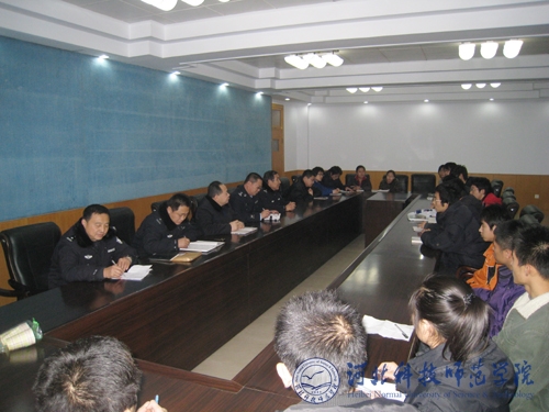 2009年12月10日下午,保卫处在昌黎校区三楼会议室组织召开昌黎校区大学生代表安全工作座谈会。保卫处副处长陈建新与相关工作人员和昌黎校区各学院大学生代表共21人参加了座谈会。昌黎县公安局国保大队大队长高接力、副大队长刘悦军、朱广生,网络侦查中队长孟庆新应邀与会。座谈会由陈建新副处长主持。