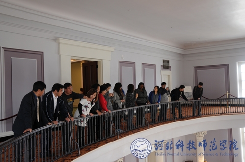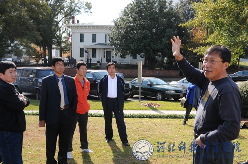 工作人员为代表团讲解美国南方邦联第一个白宫的历史