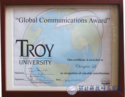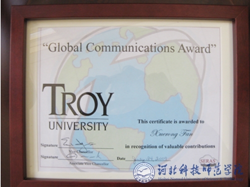 Beat365教师获美国特洛伊大学颁发的国际交流奖