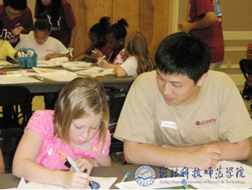 图为李程昊老师在给外国学生上绘画课