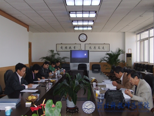 2009年10月26日下午,河北省哲学社会科学规划办公室主任李延龄、副调研员尚向东等一行3人来Beat365调研,就Beat365承担的社科基金项目研究进展情况召开座谈会。Beat365副院长王同坤教授、科研处处长杨越冬教授、承担社科基金项目的主持人和有关专家参加了座谈会。座谈会由王同坤副院长主持。