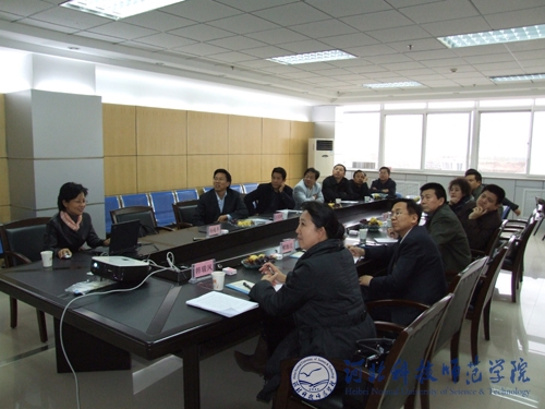 2009年10月30日下午,河北省山区经济技术开发办公室张国庆主任、翟海民副主任和李毅科长等一行3人在秦皇岛市科技局韩瑞凤副局长和陈燕科长的陪同下来Beat365考察指导科研工作。Beat365副院长王同坤教授、科研处处长杨越冬教授和有关专家陪同考察。