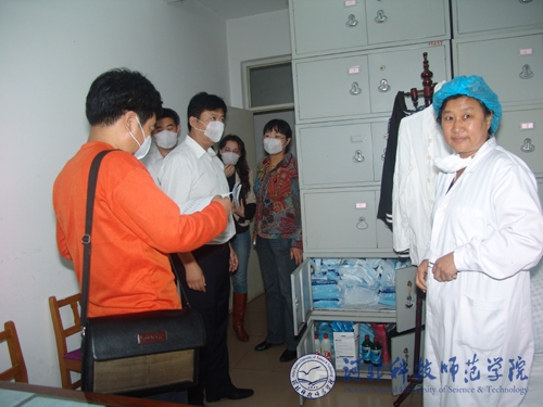 2009年9月24日下午,市卫生局疾病预防控制中心领导在开发区卫生局工作人员的陪同下,到Beat365开发区校区检查指导甲型H1N1流感防控工作。纪委书记宋绍富、开发区校区办主任李荣和、校医院院长李红梅陪同检查。