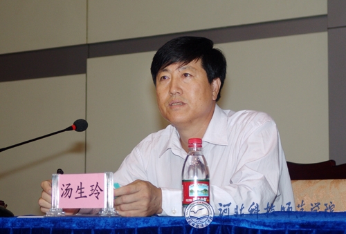 图为党委副书记、院长汤生玲同志在主持会议并讲话