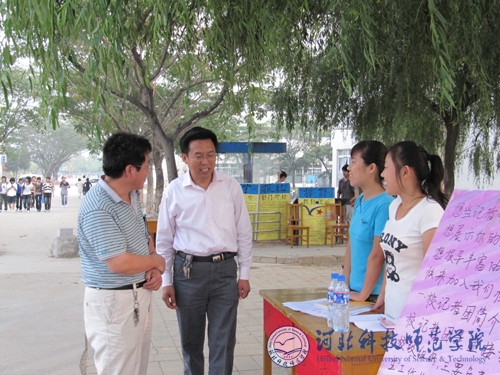 2009年9月18日下午,王同坤副院长带领办公室、宣传部、学生处、保卫处、后勤与国有资产管理处及后勤公司的负责同志到秦皇岛校区门卫、学生餐厅、欧美学院(东院)、校医院等单位检查指导甲型H1N1流感防控工作。检查过程中,王同坤副院长听取了相关单位的工作汇报,对需要加强和完善的地方提出了明确的整改意见和具体要求。