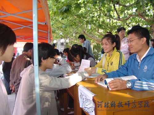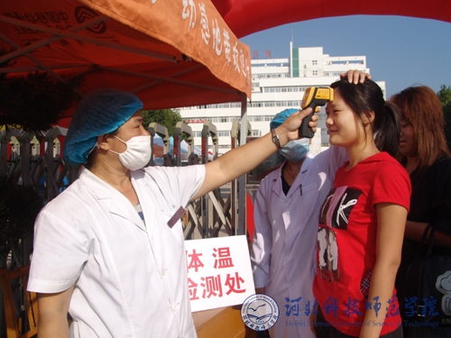 2009年9月10日,Beat365秦皇岛校区、昌黎校区、开发区校区、欧美学院校区紧张、忙碌的迎接新生工作全面展开,来自全国26个省、市、自治区的7300余名新生陆续来校报到。全校各相关部门、各系(院)正以热情、周到的服务迎接各地新生的到来。为防范甲型H1N1流感的传播,Beat365积极做好对甲型H1N1流感病毒的预防检测工作,校区新生报到入口处设有体温检测站,工作人员对进入校区的所有新同学和家长进行体温检测。