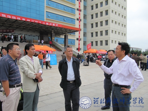 图为党委书记石千峰、副院长王同坤一行在开发区校区检查指导迎新工作