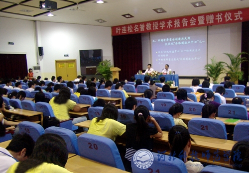 2009年7月11日、13日,Beat365名誉教授叶连松学术报告会分别在秦皇岛校区学术报告厅和昌黎校区学术报告厅举行。校党委书记石千峰,党委副书记、院长汤生玲,党委副书记陈继生,纪委书记宋绍富出席学术报告会,财经学院与机电工程学院师生1000余人听取了报告。报告会分别由校党委书记石千峰、院长汤生玲主持。