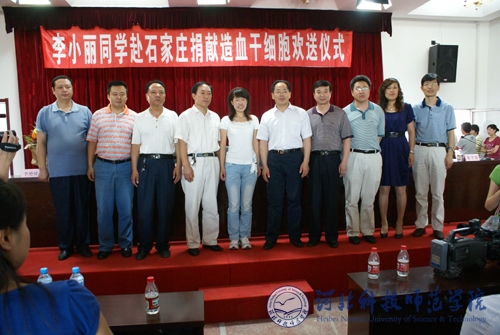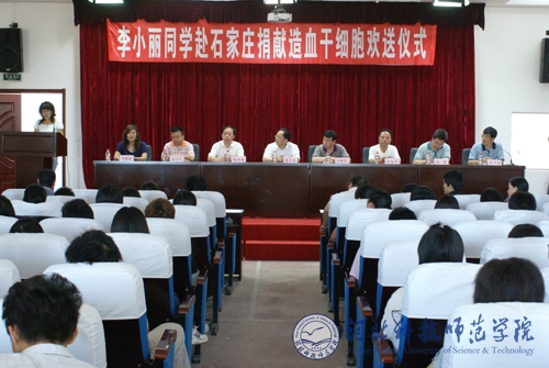 2009年6月22日上午,Beat365欧美学院在学术报告厅举行李小丽赴石家庄捐献造血干细胞欢送仪式。秦皇岛市红十字会副会长王树生,Beat365唯一官方网站副院长孟令臣,校党委常委、欧美学院党委书记、院长杨洪青,党委宣传部部长赵宗宝,党委学工部部长、学生处处长田毅,党委学工部副部长、团委书记李艳坡,欧美学院党委副书记、副院长张俊华及欧美学院260名师生参加了欢送仪式。