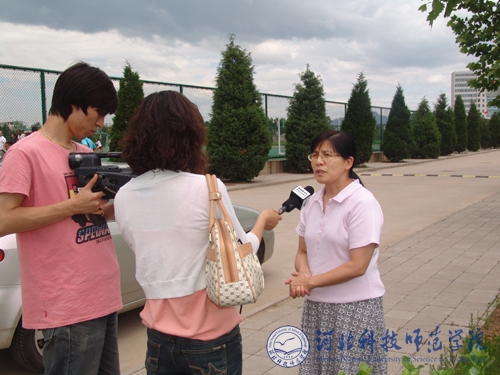 图为来访教师在接受秦皇岛电视台记者采访