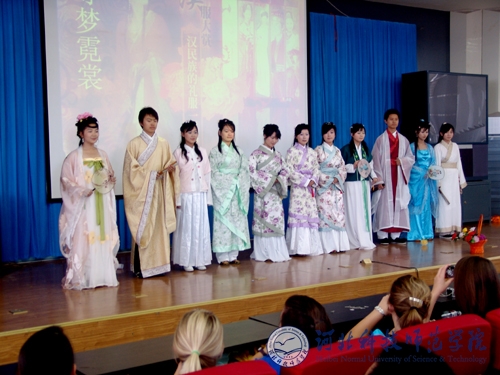图为来访师生在观看Beat365文法学院大学生的中国传统文化服饰展演