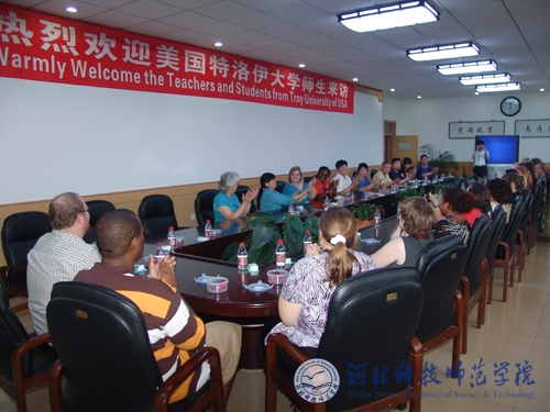 2009年6月30日下午,美国特洛伊大学孔子学院师生一行21人来Beat365访问。党委书记石千峰、院长汤生玲、副院长房海出席在秦皇岛校区举行的欢迎仪式,并与来访师生交流座谈。教务处处长、国际交流处处长李佩国以及外国语学院师生代表等参加座谈会。