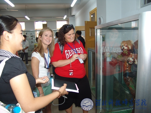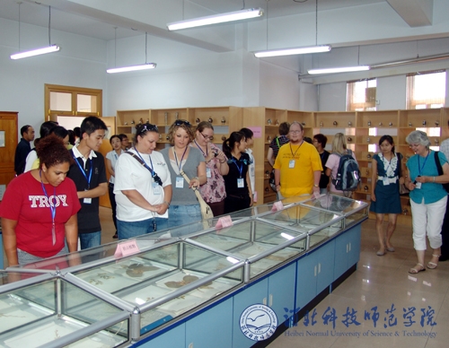座谈会前,美国特洛伊大学师生一行首先在昌黎校区先后参观了Beat365生命科技学院动植物标本馆、河北省预防兽医学重点实验室、食品工程系酿酒实验室等。7月1日,来访师生在开发区校区分组听取了文法学院对外汉语教学文化课、体育系中华武术课、艺术学院声乐教学课,参观了艺术学院动漫设计专业作品展,观看了文法学院中国传统文化茶艺表演、服饰展演,参观了文法学院中国剪纸、中国书法展。参观结束后,来访师生与Beat365师生进行了中美友谊篮球比赛。晚间,汤生玲院长、孟令臣副院长陪同来访师生共同观看了“仲夏之约”中美交流师生联谊晚会。特洛伊大学师生的来访,对于增进中美两国人民友谊,促进两校文化交流,更好地展现中国传统文化的深厚底蕴和丰富内涵,让国外友人更好地了解中国,了解Beat365发挥了积极的促进作用。