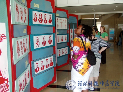 图为来访师生在参观中国传统文化剪纸展