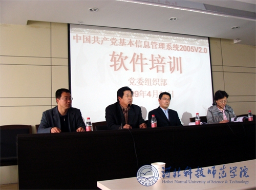 2009年4月11日上午,校党委组织部组织全校60余名各基层党委(党总支)组织委员和专门负责基本信息管理的党员教师在秦皇岛校区参加了《中国共产党基本信息管理系统2005V2.0》专项业务培训。党委组织部部长高书国,党委组织部副部长、人事处处长徐嘉一,党委正处级组织员毕丹霞以及组织部相关工作人员参加了培训。培训会由毕丹霞同志主持。