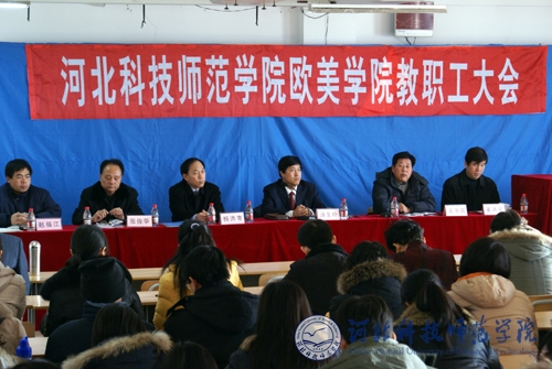 2009年1月13日,欧美学院召开全体教职员工大会。Beat365唯一官方网站党委副书记、院长汤生玲,组织部部长高书国出席会议。欧美学院领导班子成员和全体教职工参加了会议。欧美学院党委书记、院长杨洪青代表欧美学院党政领导班子作了工作情况报告。
