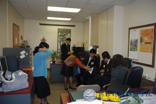 2008年11月17日至24日,学院党委副书记、院长汤生玲教授率我院代表团一行4人赴美国阿拉巴马州,参加我院与该州特洛伊大学共建孔子学院的揭牌仪式,并与该校洽谈深化合作办学事宜。