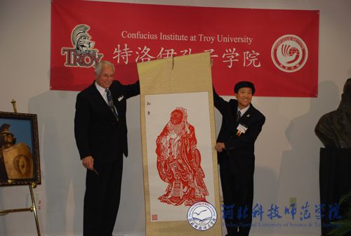 我院与特洛伊大学共建孔子学院的揭牌仪式原定今年7月举行,受四川汶川大地震和国家外事政策调整的影响,推迟到11月21日。