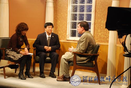 图为汤生玲院长接受特洛伊电视台专访