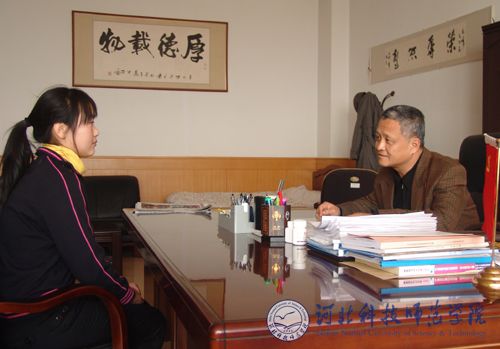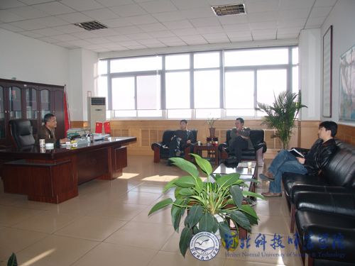 2008年11月28日,党委书记石千峰在秦皇岛校区会见了来我院采访付华同学事迹的《人民日报》驻河北记者站采编部主任王明浩一行,并会见了接受采访的付华同学。