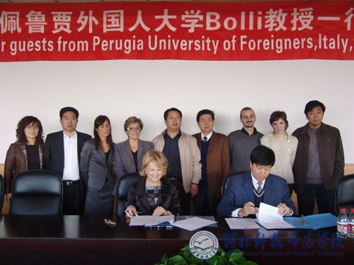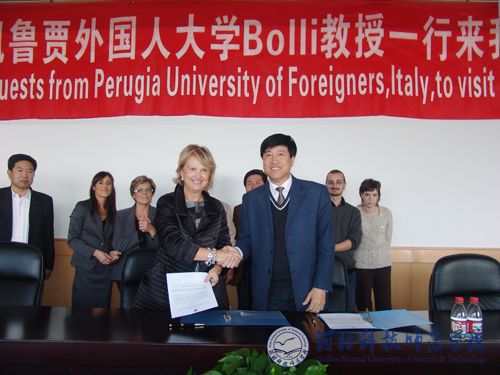 会谈中,院长汤生玲教授对意大利佩鲁贾外国人大学Bolli教授一行的来访表示热烈的欢迎。汤院长向Bolli教授一行简要介绍了学校概况及意大利语专业建设和留学培训情况,并就双方合作事宜与Bolli教授进行了亲切友好座谈。随后,汤生玲院长和意大利佩鲁贾外国人大学Bolli教授在《Beat365唯一官方网站与意大利佩鲁贾外国人大学在Beat365唯一官方网站设立“意大利语语言培训与语言水平测试中心” 协议书》上签字。