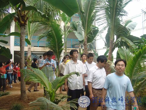 图为Beat365全体新教师在学校实践教学基地—集发生态园热带植物园参观
